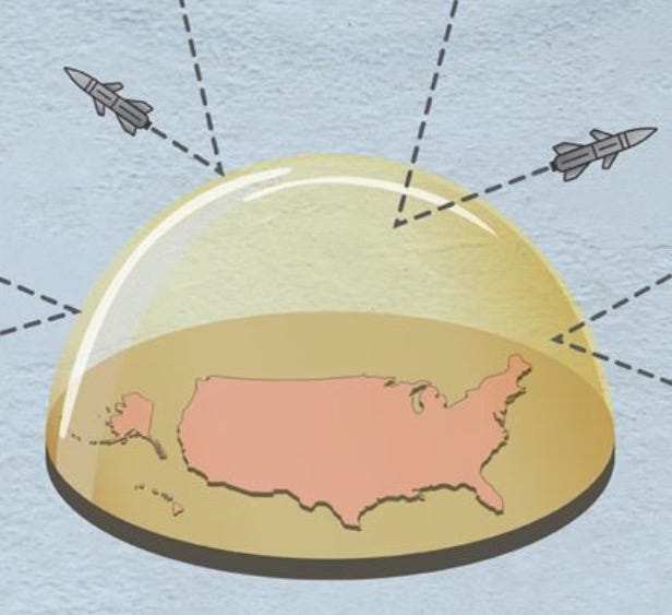 Never mind that all manner of military experts have seriously questioned the notion of shooting ICBMs out of the air as a dangerous scheme. A money pit that could take decades to get right.