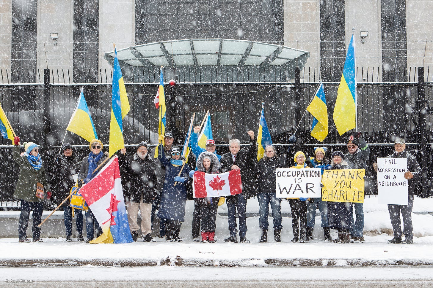 I went to the Embassy to stand in solidarity with the protesters who gather each day outside the gates for freedom in Ukraine. On the morning that I attended, I learned that Pete Navarro, Trump's crackpot economic guru, boasted that America was looking to redraw the Canadian border.