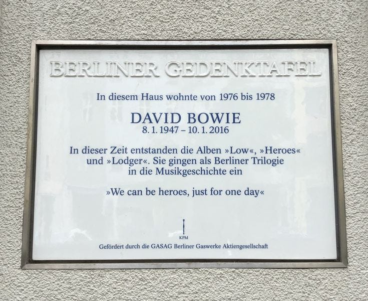When I was in Berlin in 2022 for meetings with the Social Democratic government, I made a pilgrimage to the memorial for David Bowie at the apartment block where he lived while recording such iconic albums as Low, Lodger, and Heroes.