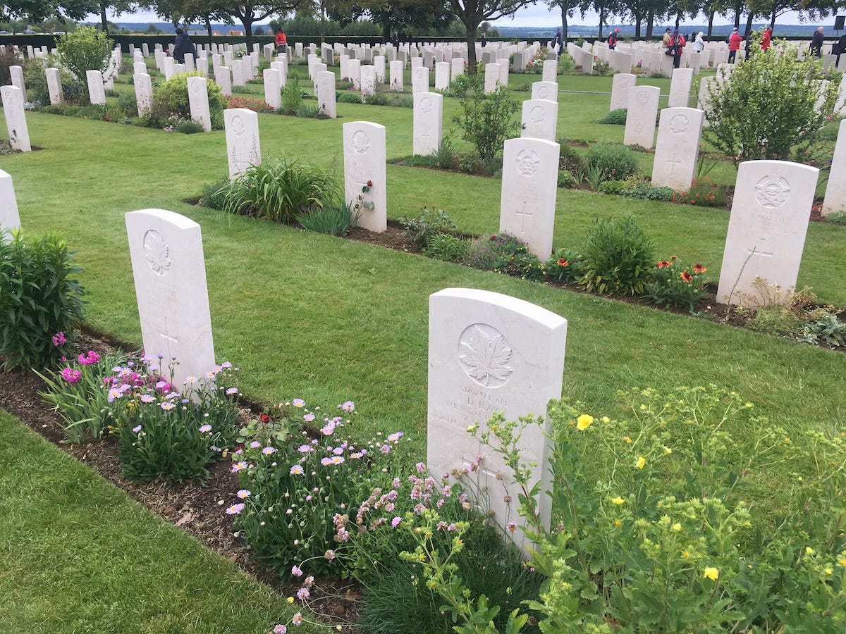 At a beautiful ceremony in the vast Canadian cemetery at Bretteville-sur-Laize, young schoolchildren read out a poem in French to Canada's dead: